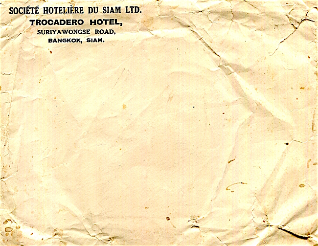 Siam Bangkok Hotel Trocadero Envelope 1938