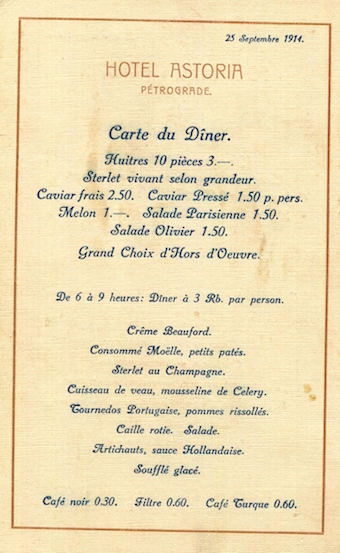 Russia St Petersburg Hotel Astoria Menu 1914 3 Front