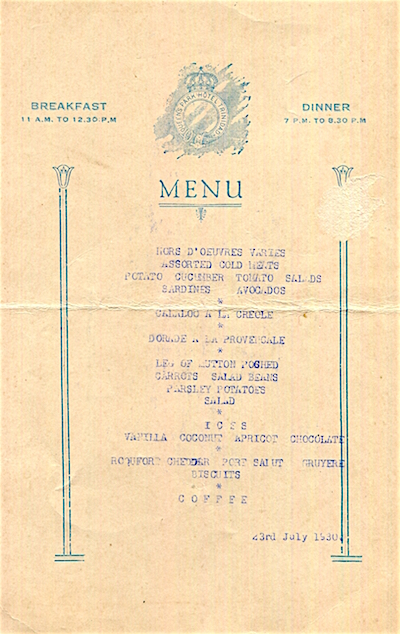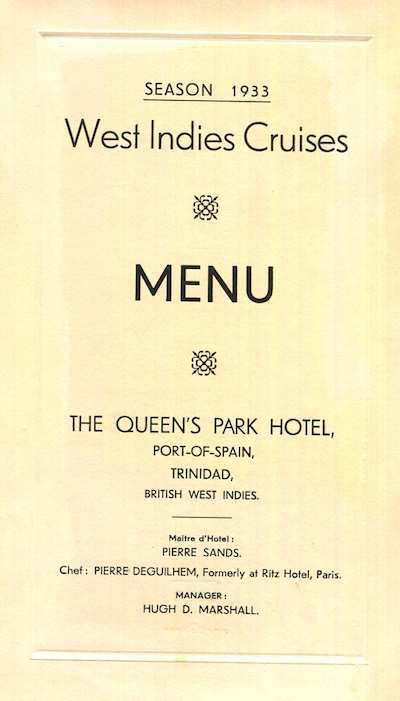 Trinidad And Tobago Port Of Spain Hotel Queens Park Menu 1930