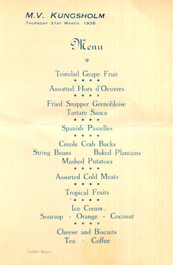 Trinidad And Tobago Port Of Spain Hotel Queens Park Menu 1938 Inside