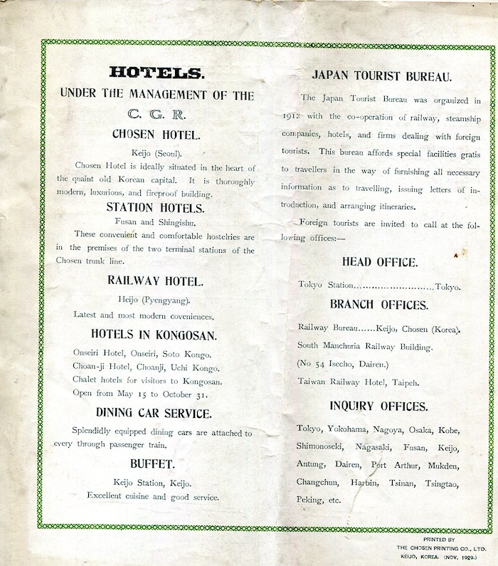 Korea Transport Railroads Chosen Railways Brochure 1929 Back