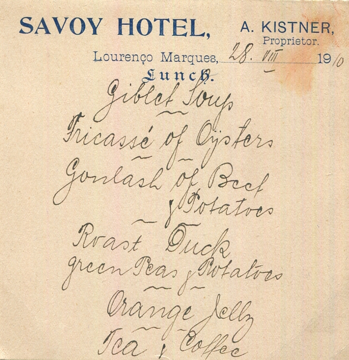 Mozambique Lourenco Marques Hotel Savoy Menu 1910