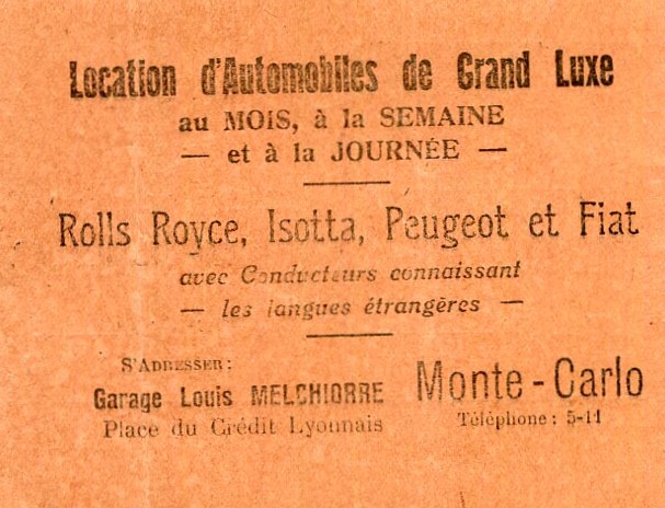 Monaco Commerce Auto Rental L Melchiorre Receipt 1930