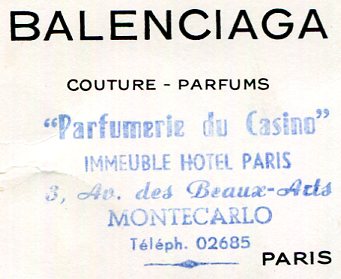 Monaco Commerce Monte Carlo Business Card Balenciaga 1930
