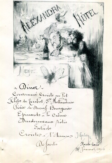 Monaco Monte Carlo Hotel Alexandra Menu 1905