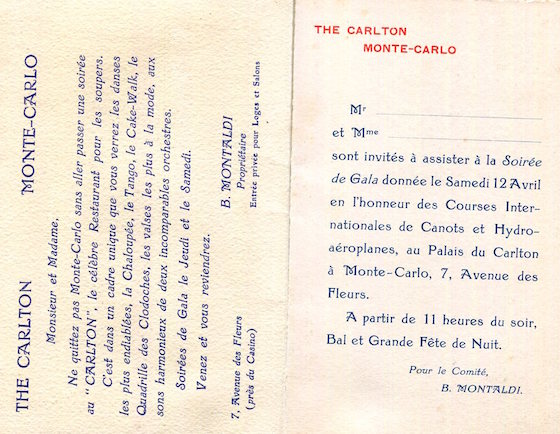 Monaco Monte Carlo Hotel Carlton Invitation Soiree De Gala 1913 Inside 2