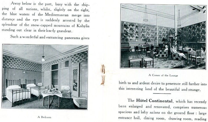 Algeria Algiers Hotel Continental Brochure 1927 Inside