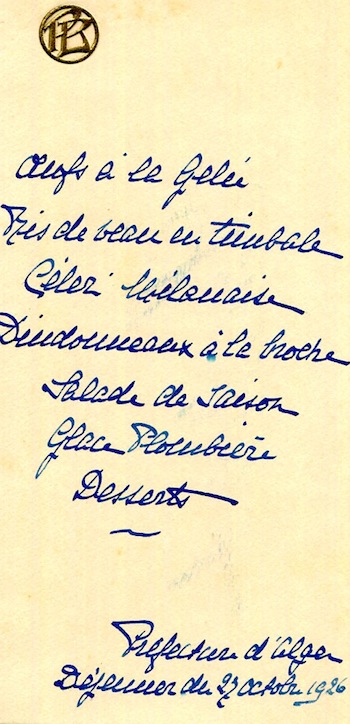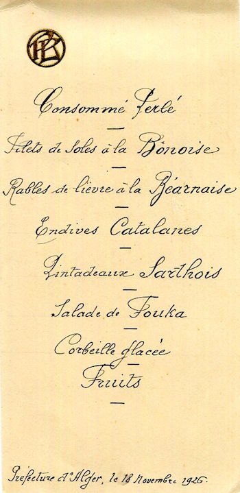 Algeria Algiers Special Occasion Menu 1929