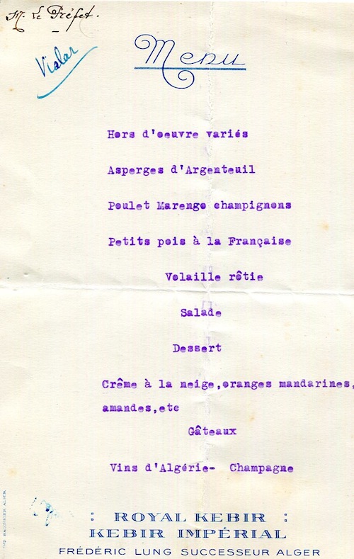 Algeria Algiers Special Occasion Menu Prefecture Of Algeria 1925-3