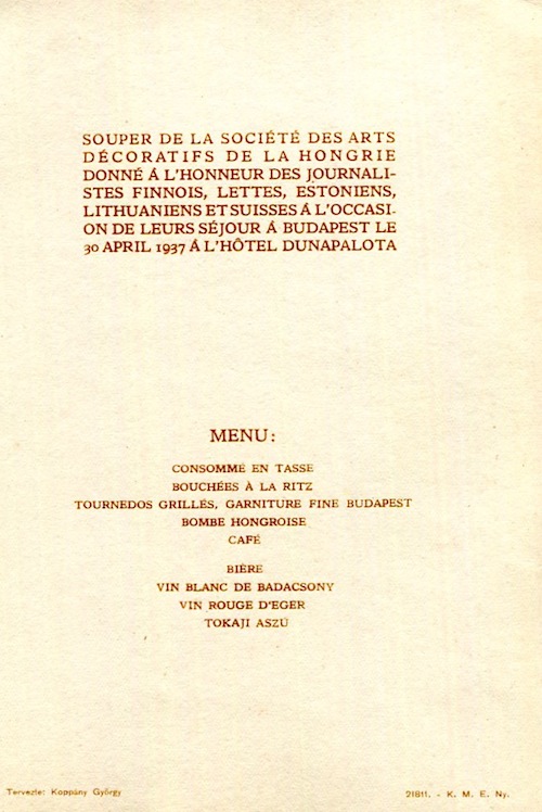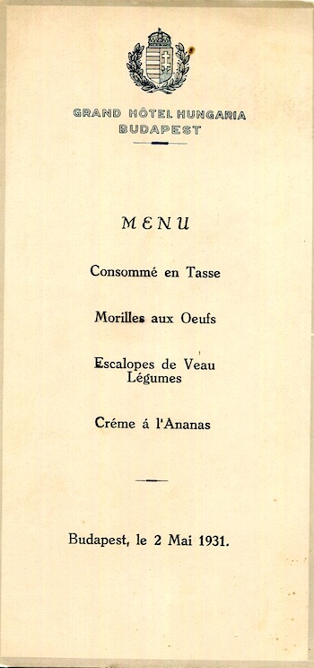 Hungary Budapest Grand Hotel Hungaria Menu 1931