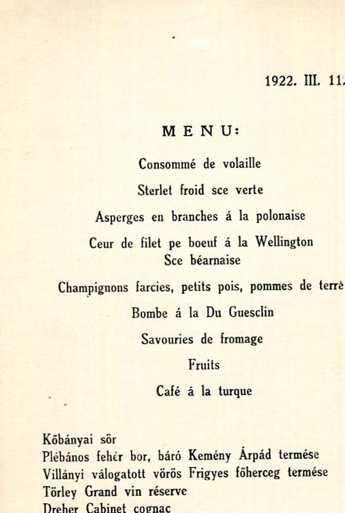 Hungary Budapest Grand Hotel Hungaria Menu 1922