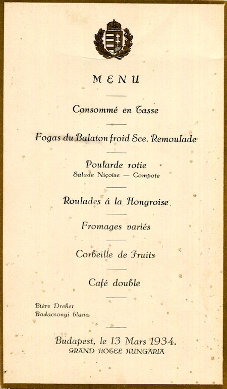 Hungary Budapest Grand Hotel Hungaria Menu 1934