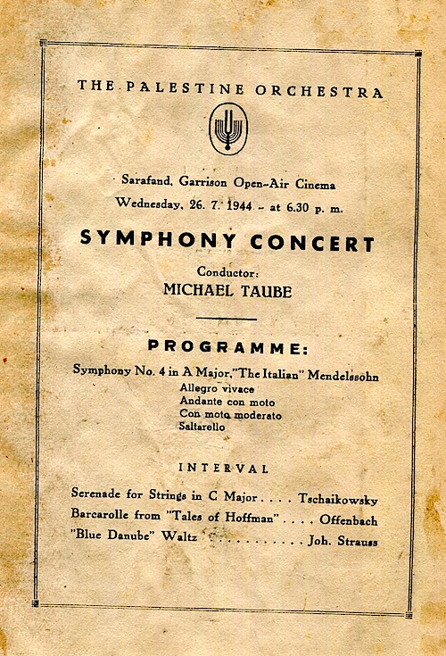 Palestine Entertainment Palestine Orchestra Tel Aviv Program 1944-7 Front