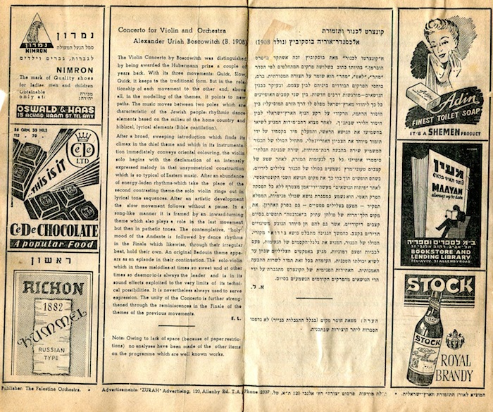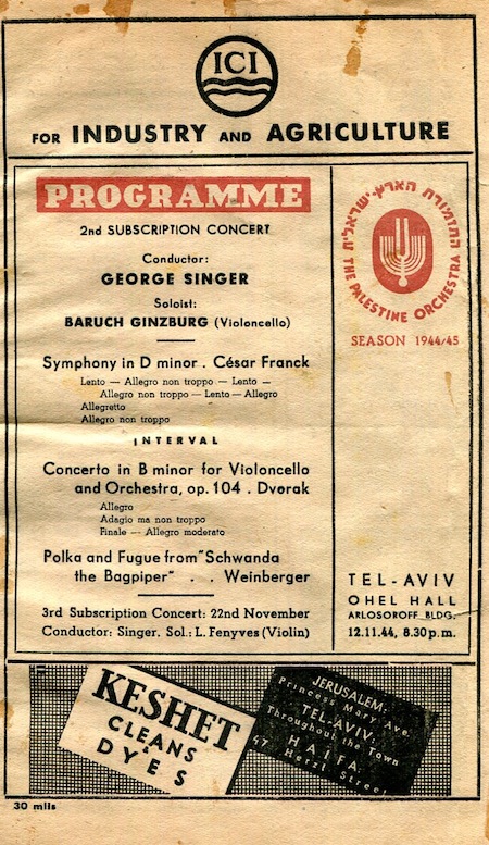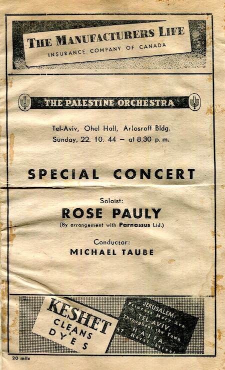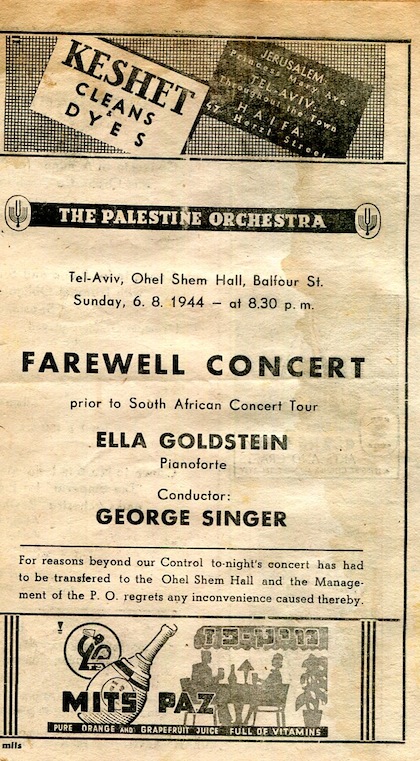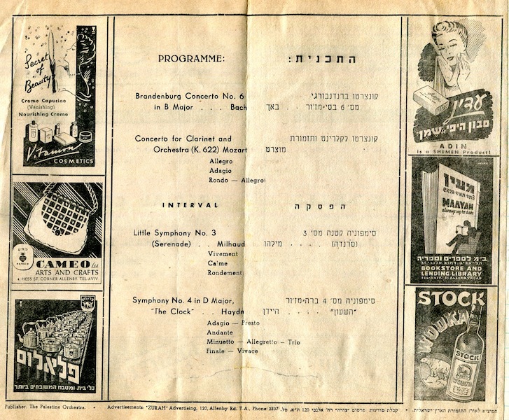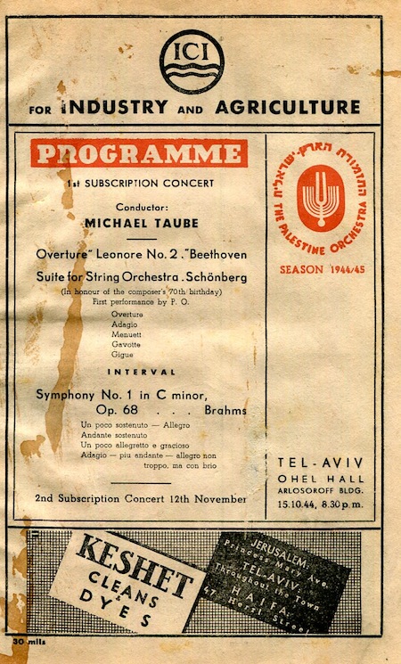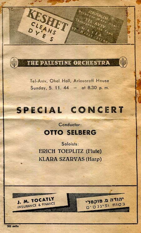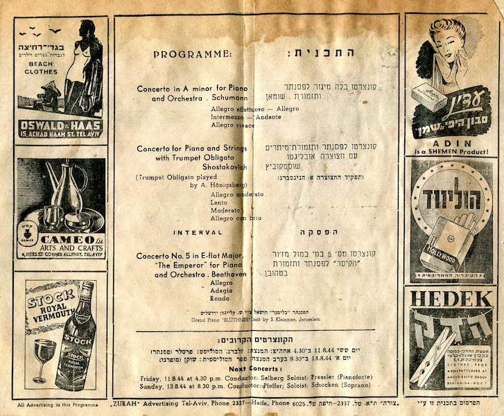 Palestine Entertainment Palestine Orchestra Tel Aviv Program 1944-4 Front