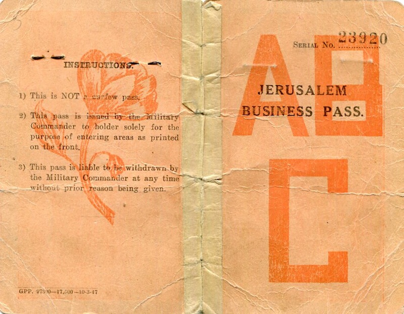 Palestine Jerusalem Business Pass YMCA 1947-1 Front