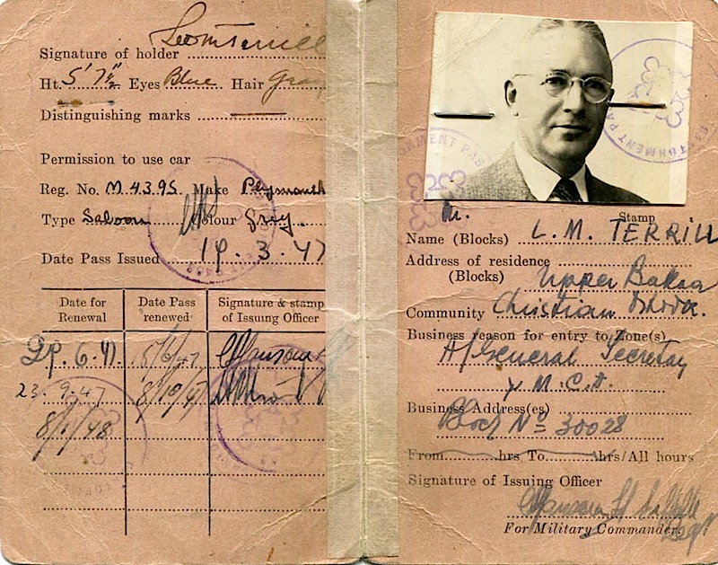 Palestine Jerusalem Business Pass YMCA 1947-1 Inside