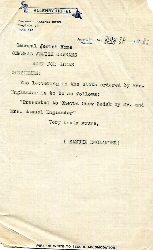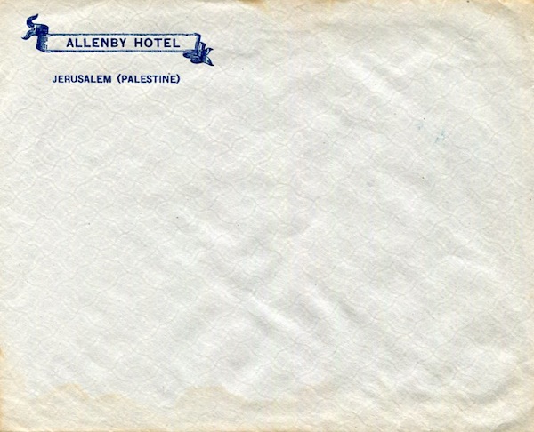 Palestine Jerusalem Allenby Hotel Stationery 1924