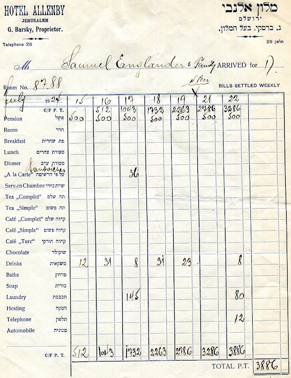 Palestine Jerusalem Allenby Hotel Receipt 1924-2