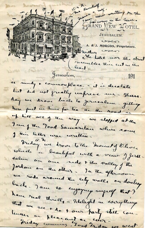 Palestine Jerusalem Grand New Hotel Hotel Stationery 1913-2