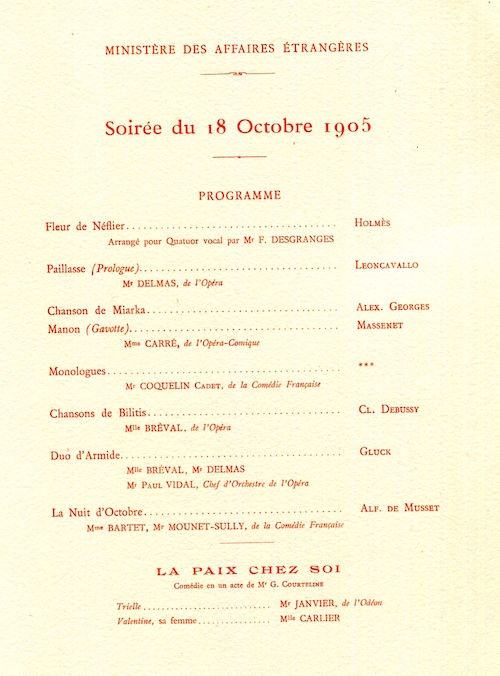 France Paris Entertainment Acade mie Nationale De Musique Program For King Queen Of Norway 1907 Inside