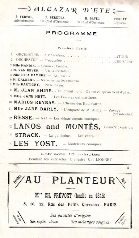 France Paris Entertainment Alcazar Program 1910 2 Front