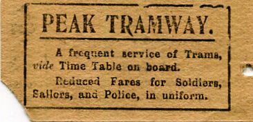 Hong Kong Transport Peak Tram Ticket 1909 Back