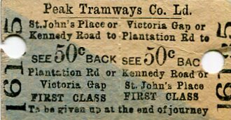 Hong Kong Transport Peak Tram Ticket 1909 Front