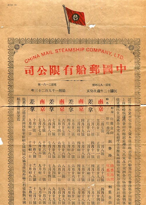 Hong Kong Transport Steamship China Mail Hand Bill Schedules 1923