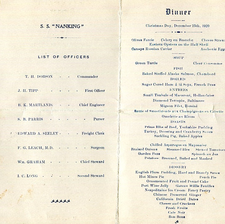 Hong Kong Transport Steamship China Mail Menu 1920 Inside
