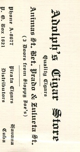 Cuba Commerce Havana Business Card Adolph's Cigar Store 1938
