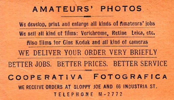 Cuba Commerce Havana Cooperativa Fotografica Business Card 1937
