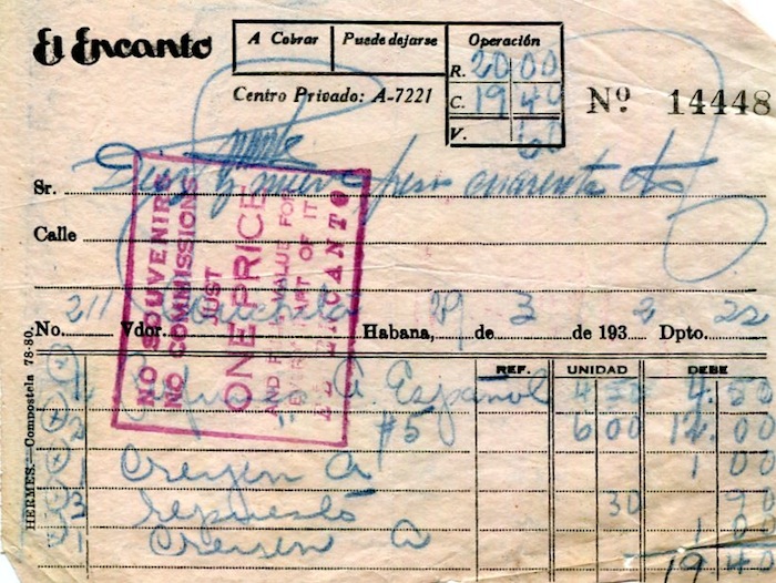 Cuba Commerce Havana El Encanto Department Store Receipt 1931-2
