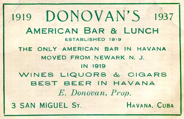 Cuba Havana Donovan's American Bar & Lunch Business Card 1937