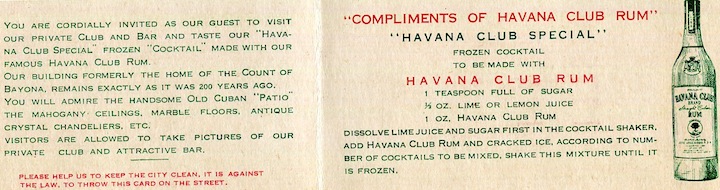 Cuba Havana Havana Club Rum Leaflet Private Club 1940 Back