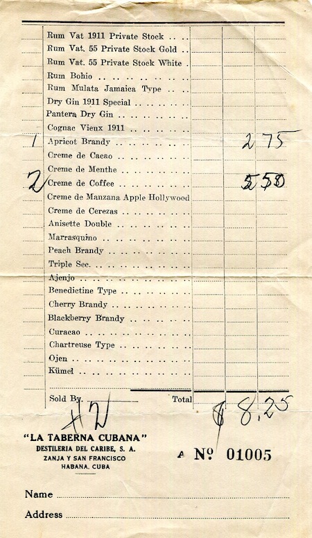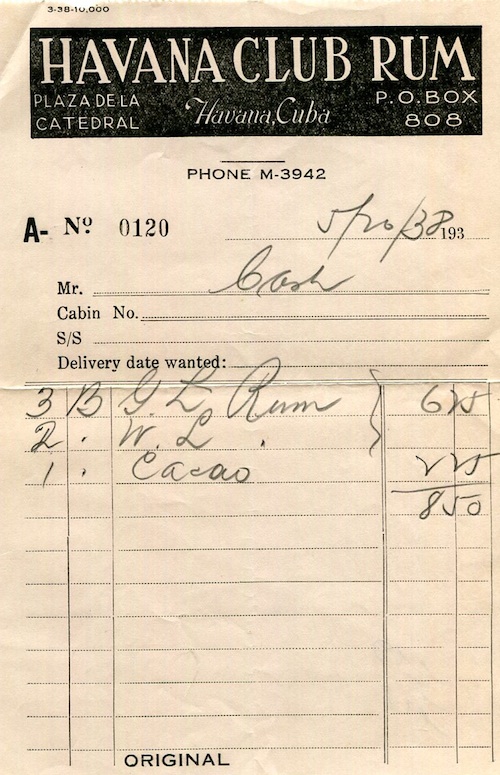 Cuba Havana Havana Club Rum Receipt Private Club 1938
