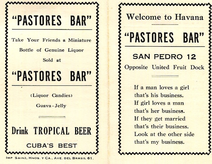 Cuba Havana Business Card Sloppy Joe's Bar 1925
