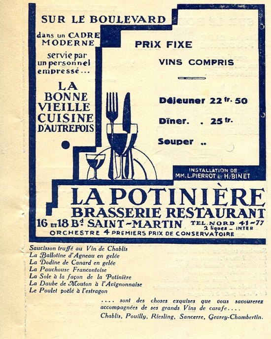 France Paris Leaflet La Potinière Brasserie Restaurant 1932
