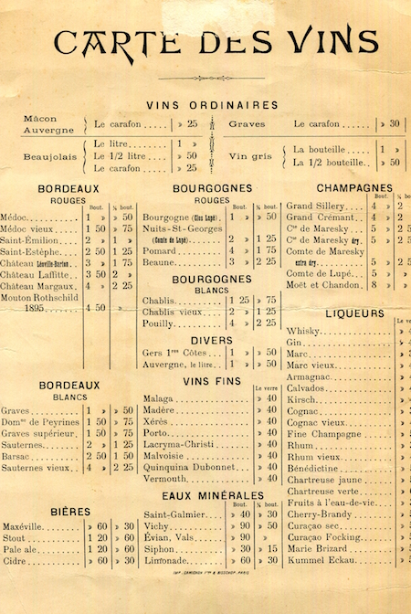 France Paris Menu 1883