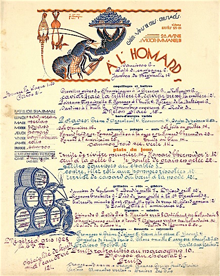 France Paris Menu A L Homard 1929