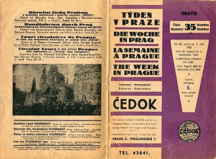 Czechoslovakia Travel Agency Čedok Tours This Week In Prague Brochure 1929-2 Front