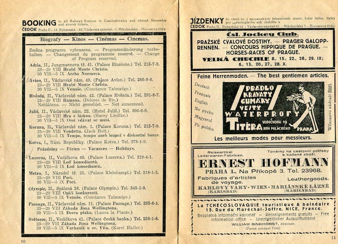 Czechoslovakia Travel Agency Čedok Tours This Week In Prague Brochure 1929-2 Inside