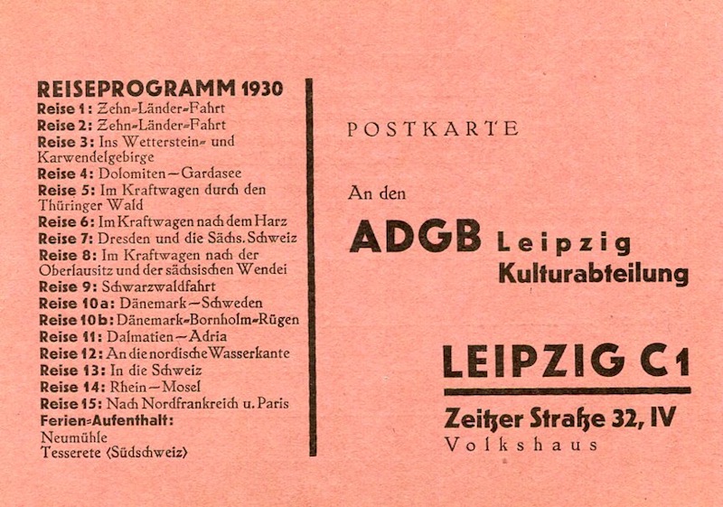 Germany Travel Agency A.D.G.B. Leaflet 1930