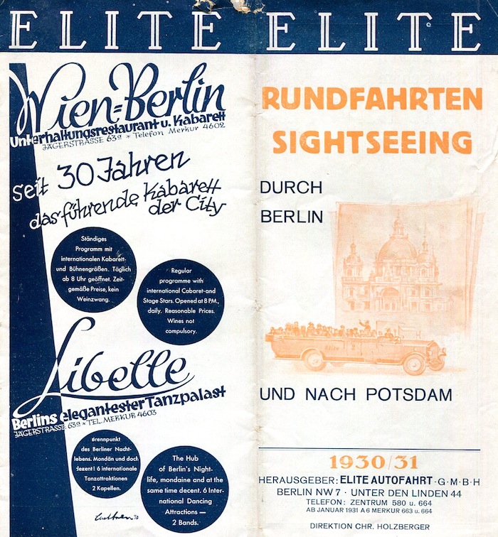 Germany Travel Agency Berlin Brochure City Tours Elite 1930-1931 Front