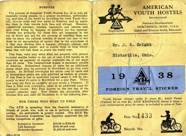 United States Travel Agency AYH Itinerary 1938 June 4 Pg. 1