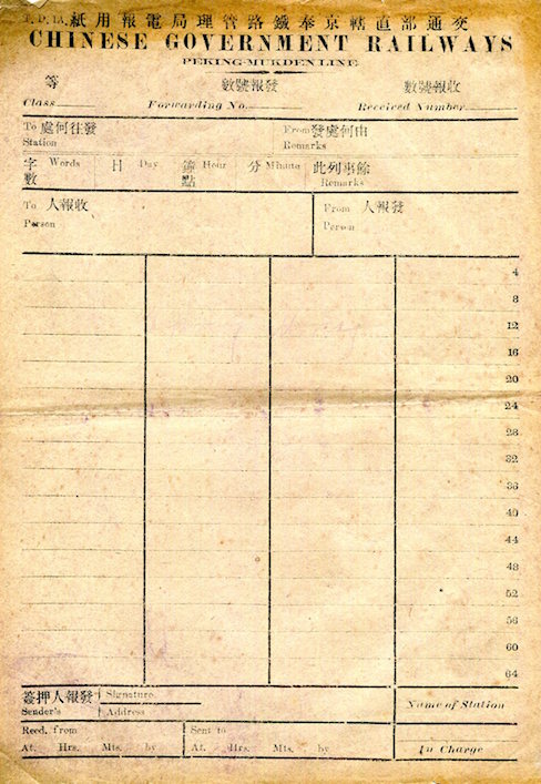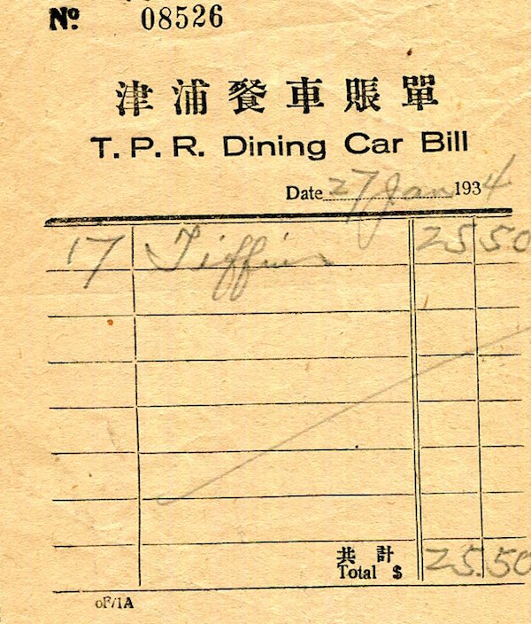 China Transport Railroads Peking Chinese Government Railways TPR Dining Car Receipt 1934