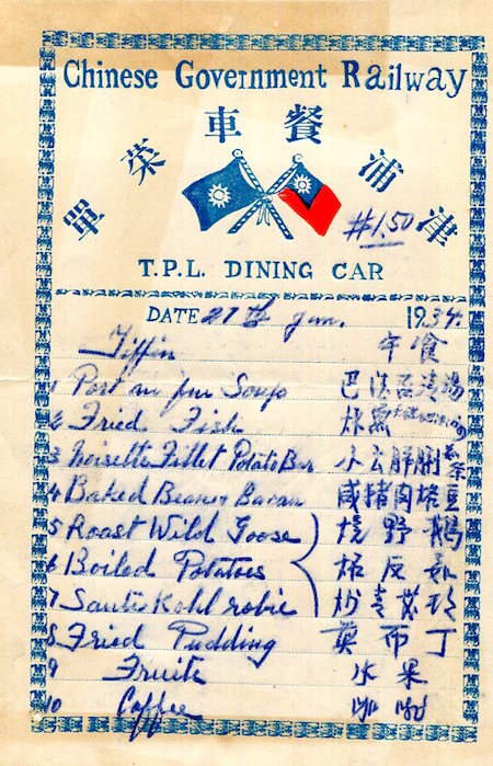 China Transport Railroads Peking Chinese Government Railways TPL Menu 1934