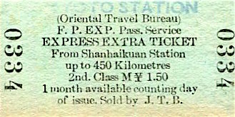 China Transport Railroads Peking Chinese Government Railways Ticket 1937 Back