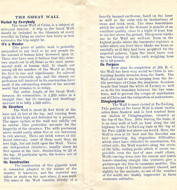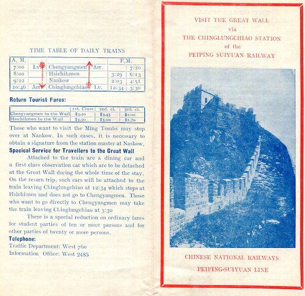 China Transport Railroads Peking Chinese National Railroad Peking-Suiyuan Brochure 1935 Back