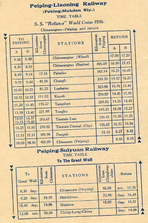 China Transport Railroads Peking Chinese National Railroads Menu Timetable 1936 Inside 1