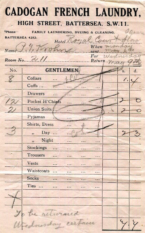 England Commerce Battersea Cadogan French Laundry Receipt 1928